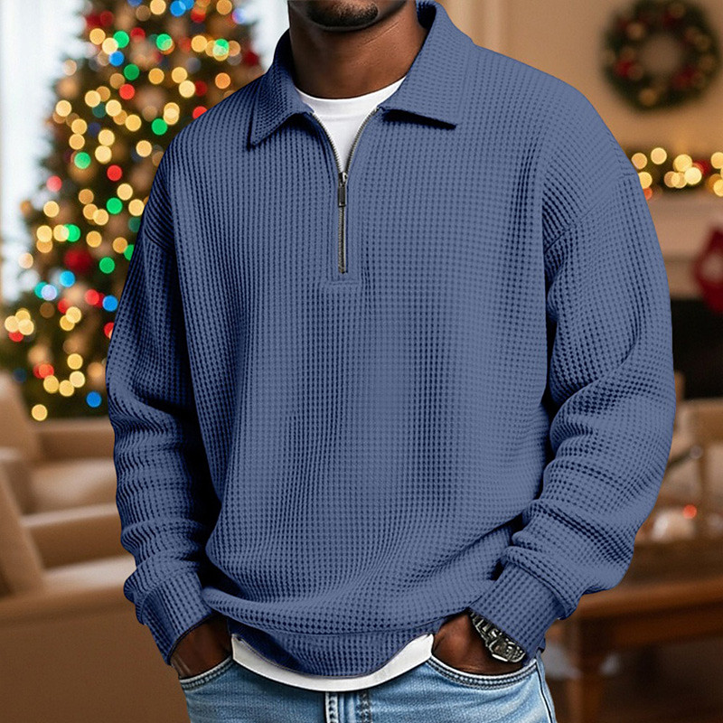 Men's Waffle Polo Shirts Polo Shirts Daily Wear Date Quarter Zip Long Sleeve Fashion Basic Plain Zipper Spring Fall Regular Fit Black White Wine Khaki Light Grey Army Green Waffle Polo Shirts