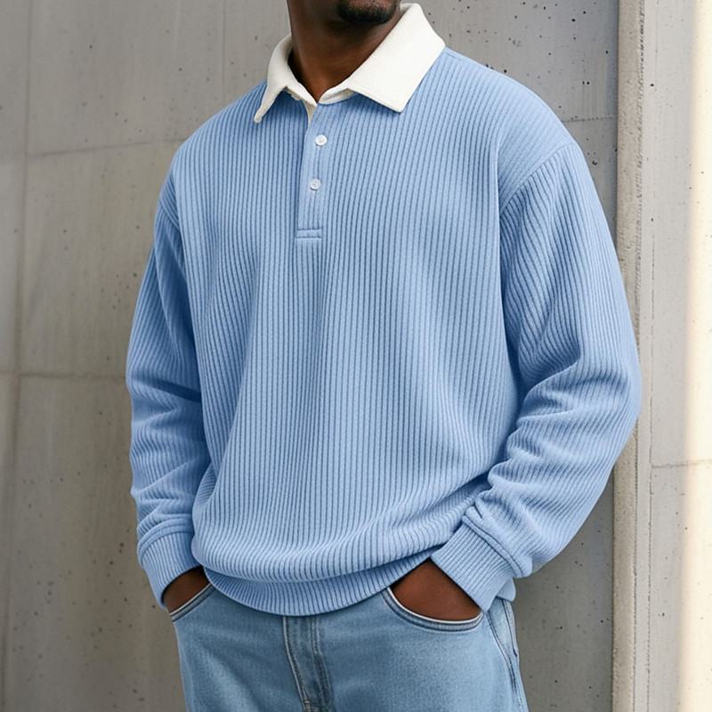 Men's Polo Corduroy Shirt Casual Sports Lapel Long Sleeve Fashion Basic Color Block Color Block Buttons Fall Spring Fall Fall Winter Regular Fit Black Wine Dark Blue Gray Light Blue Polo