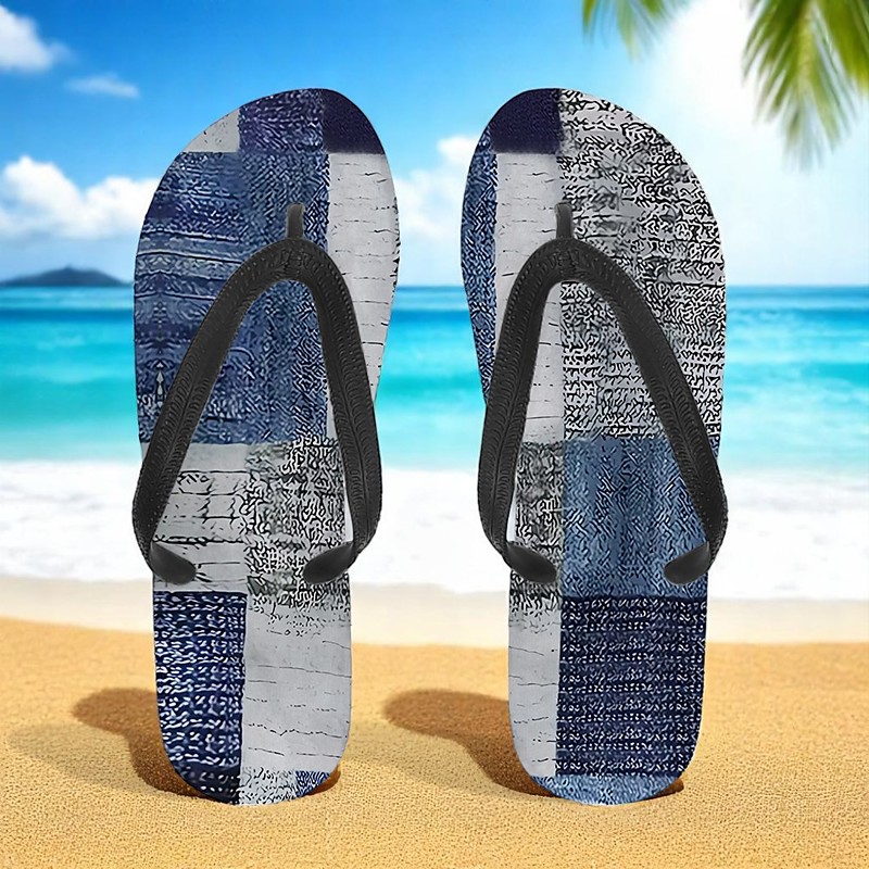 Men's Blue Leaf Printed Flip Flops – Tropical Stylish Style for Beach Vacations, Island Hopping Beachside Dinners