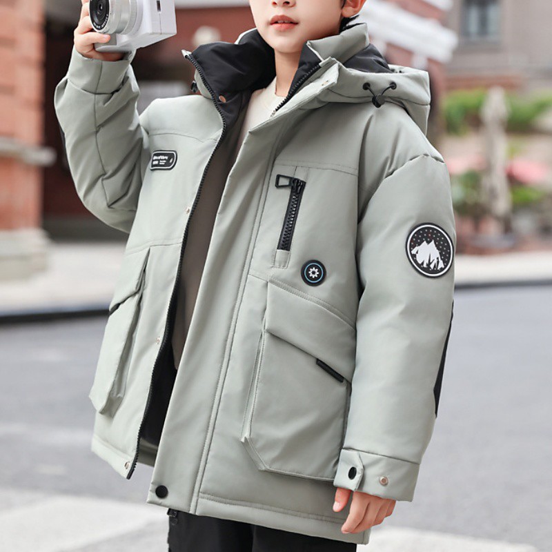 Kids Unisex Down Jacket Outdoor Jacket Puffer Jacket Outerwear Letter Long Sleeve Keep Warm Windproof Coat Outdoor Daily Basic Black Green Gray Fall Winter 4 years