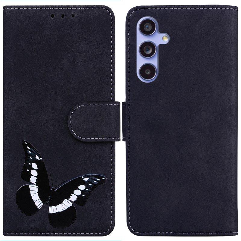 Samsung Galaxy A35 5G Fodral Äkta Läder Fjärilstryck - Svart