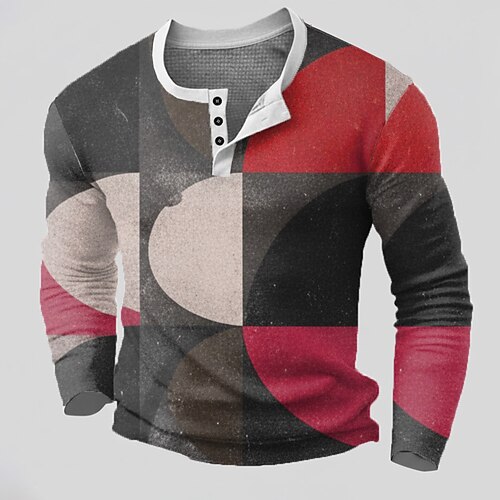 Herren Geometrisch Farbblock Waffel-Henley-Hemd Lässiger Stil Klassicher Stil Langarm Mode Designer Basic Outdoor Lässig Täglich Frühling Herbst Ganzjahres Blau Rot Orange Henley Henley T-Shirt