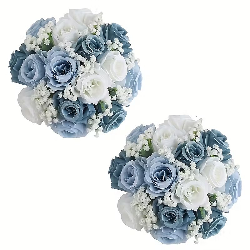 2 Pack Artificial Rose Baby's Breath Flower Balls, Faux Floral Centerpieces for Wedding Table Decor, Valentine Birthday Housewarming Gift
