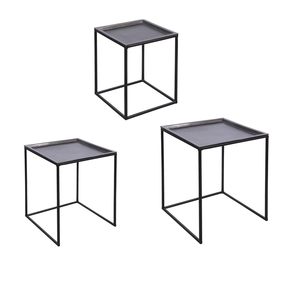 vidaXL Table Gigogne 3 pcs Bois de Mangue Massif et Métal