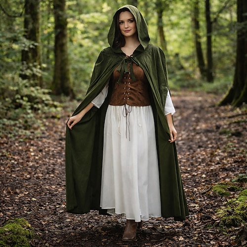 Set Retrò Vintage Medievale Rinascimento Lunghezza alla caviglia Mantello Gonna Gilet Ranger Costume Per donna Halloween Carnevale Fiera Rinascimentale Festa a tema retrò Adulti Gilet Gonna Mantello