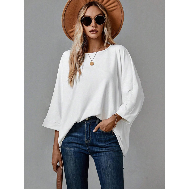 Women's Summer Tops Casual Long Sleeve Crew Neck Regular Tops Daily White Summer