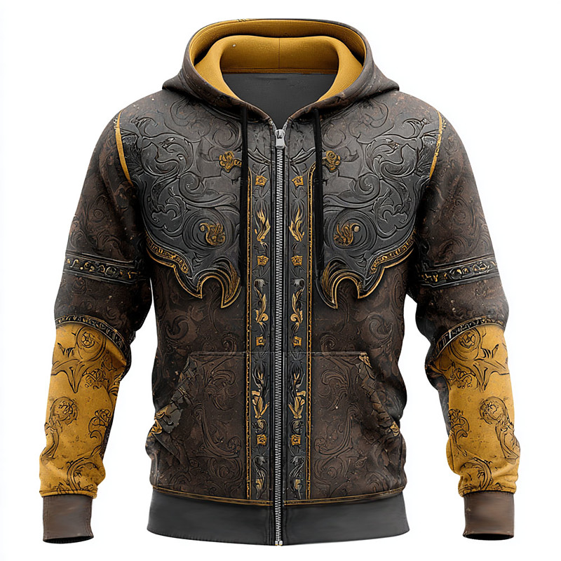 Men's Cowboy Costume Hoodie Jacket Sweatshirt Western Cowboy All Over Print Long Sleeve Zip Vacation Streetwear Lake blue Brown Green Gray Zipper Fall Winter Designer S M L XL XXL XXXL