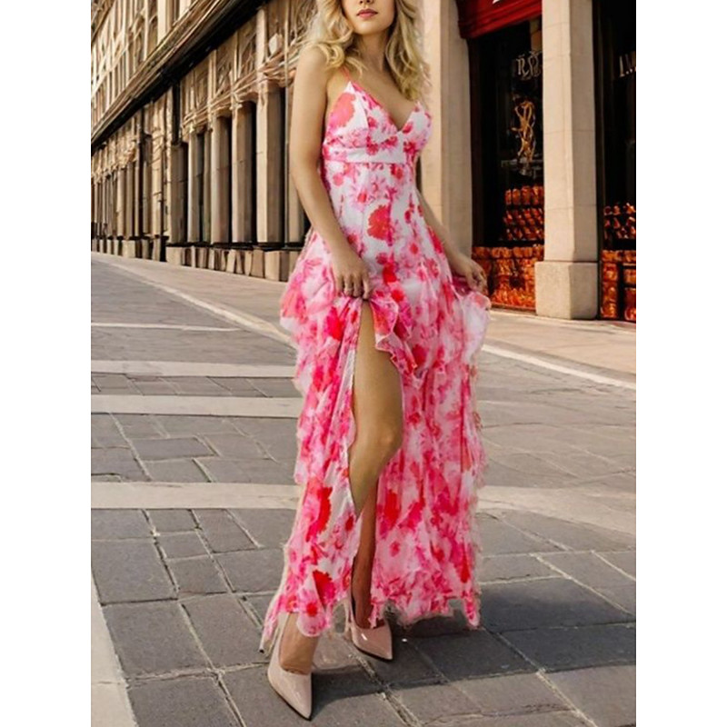 Vestito Maxi da Donna Vestito da Spiaggia Vestito A-Line Vestito Floreale Moderno Casual Fluttuante Vacanze Casual Quotidiano Vestito Regolare Stampa Senza Maniche Spaghetti Strap Bianco Viola