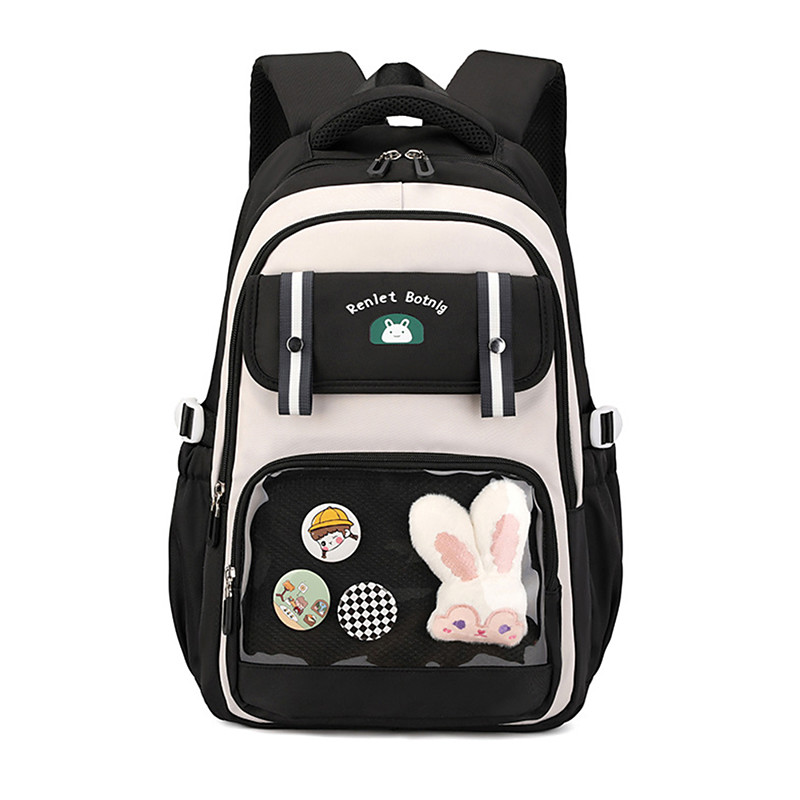 Girl's Large Capacity Lightweight Waterproof Backpack with Clear Front Pocket and Cute Bunny Pin - Cute Travel Bag for School, College and Weekend Trips