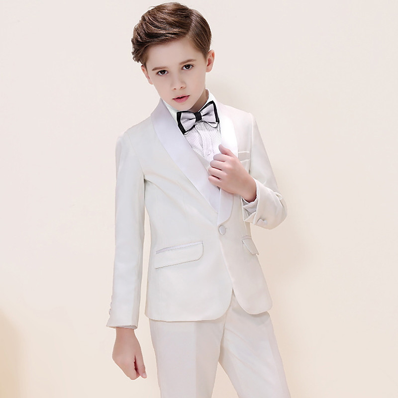 3 Pieces Ring Bearer Suit Boys Kids Suit Formal Suit Suit Blazer Clothing Set Party Fashion Basic Gentle Solid Color Black White Polyester
