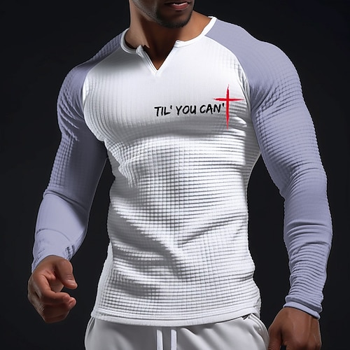 Maglietta da uomo con Bibbia Crusaders Fino a Quando Puoi' Maglietta a maniche lunghe Raglan Collo V Christian Ispirazionale Grafica Cross Rossa Texturizzata Waffle Slim Fit Muscle Fit Chiesa