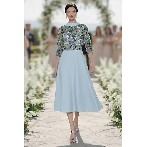 Linea ad A Lunghezza alla caviglia Lunghezza Tè Abito Formale Abito da cerimonia per signora Manica 3/4 Scollo a Cascata Elegante Vintage Formale Raso con Perline