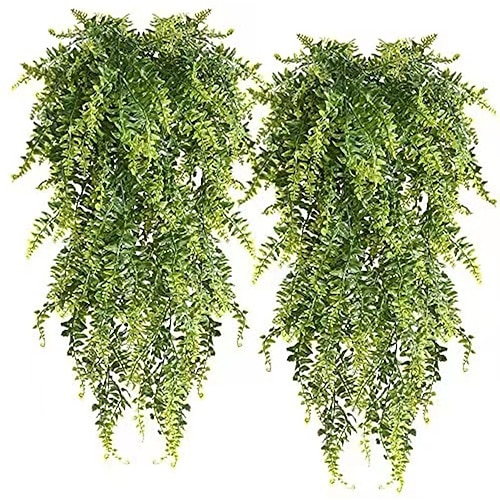 Confezione da 4 piante artificiali di Boston, felce artificiale, edera finta, verde artificiale resistente ai raggi UV, foglie di vite finte in rattan per decorazioni da interni ed esterni, cesti da
