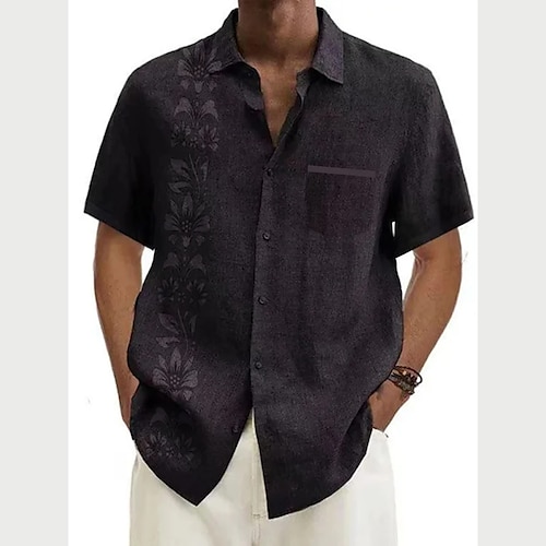 Herren Hemd Leinenhemd Freizeithemd Knopfhemd Baumwollhemd Einfach Urlaub Straße Weiß Hellgrau Dunkelgray Beige Kurzarm Umlegekragen Sommer Bekleidung Button-Down
