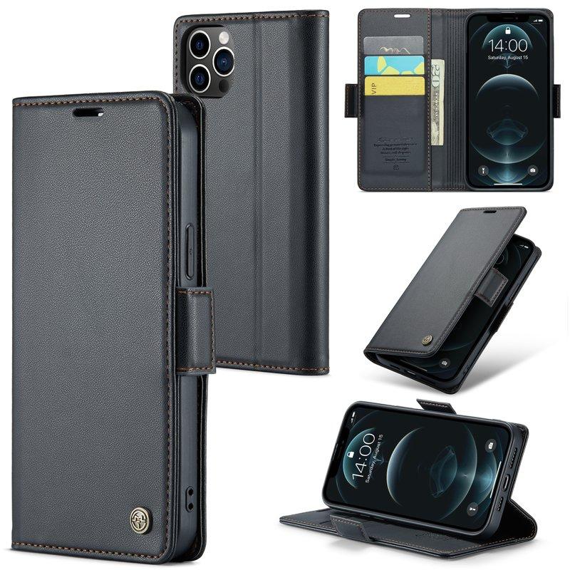 CASEME iPhone 12 Pro Max Plånboksfodral Konstläder RFID-Skydd Svart