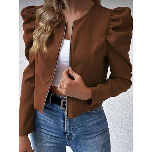 Damen Freizeitjacke Bequem Atmungsaktiv Reißverschluss Lässig Einfarbig Urlaub Straße Alltagskleidung Ausgehen Reisverschluss Kurz Rundhalsausschnitt Normale Passform Langarm Oberbekleidung Schwarz