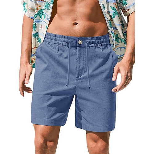 Herren Shorts Leinenshorts Sommershorts Strandshorts Kordelzug Elastischer Bund Einfach Komfort Atmungsaktiv Kurz Täglich Outdoor Strand Urlaub Mode Blau Schwarz Unelastisch