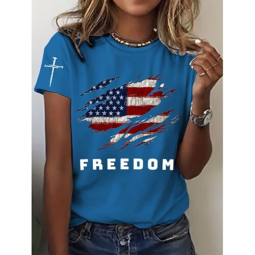 Giorno dell'Indipendenza Americana Per donna Maglietta Grafico Bandiera Americana Vintage Elegante Classico Manica Corta Girocollo Top Regolari Quotidiano Weekend Stampato Nero Bianco Estate Primavera