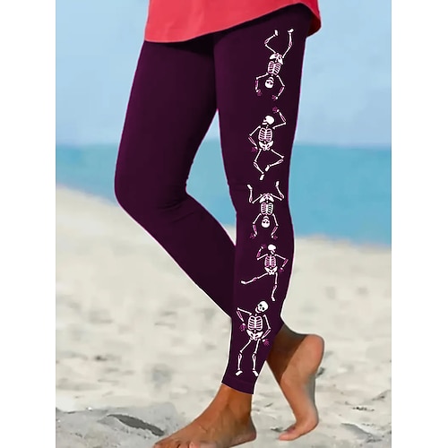 Leggings da donna Vacanza Moda Vintage Lunghezza Completa Vita Alta Stampa Grafica Teschio Termico Caldo Morbido Traspirante Elastico Formale All'aperto Vacanza Nero Rosso Arancione Verde Primavera