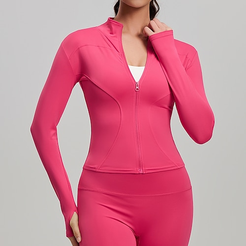 Per donna Tinta unita Giaccia da corsa Giacca da esterno Giacca sportiva Estate Cerniera completa Snello Manica Lunga Asciugatura Rapida Leggero Elastico Traspirante Palestra Corsa Esercizio Nero