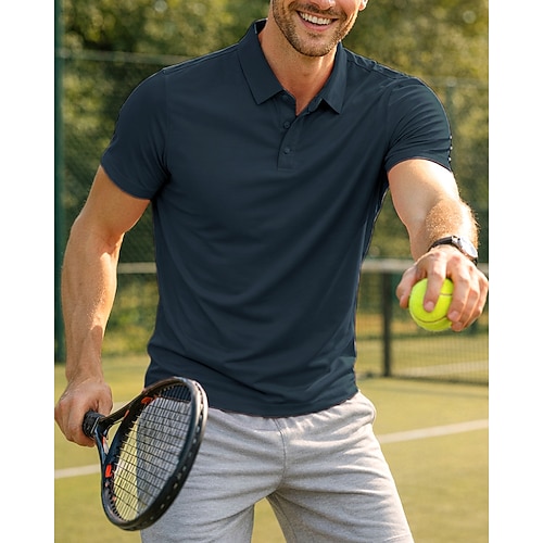 Per uomo Tinta unita Maglietta sportiva Maglia da tennis Maglietta da tennis Manica Corta Asciugatura Rapida Elastico Traspirante Tennis Da golf Pickleball Colletto Polo Top Grigio scuro Nero Rosa
