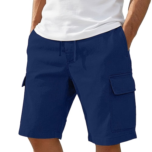 Per uomo Pantaloncini cargo Shorts di Lino Pantaloncini Estivi Shorts da Spiaggia Coulisse Elastico in vita Base Semplice Lunghezza al ginocchio All'aperto Spiaggia Vacanza Hawaiano Blu Nero