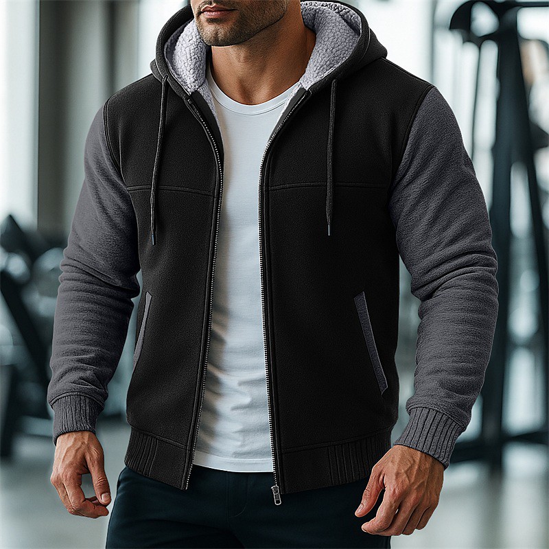 Men's Hoodie Full Zip Hoodie Fleece Hoodie Fleece lined Hoodie Black Red Burgundy Navy Blue Light Grey Hooded Plain Patchwork Color Block Sports Outdoor Casual Daily Streetwear Cool Sportswear