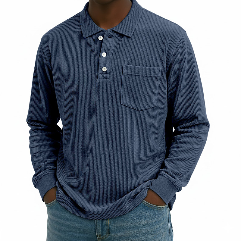 Men's Polo Corduroy Shirt Casual Sports Lapel Long Sleeve Fashion Basic Color Block Textured Buttons Warm Fall Winter Regular Fit Black Dark Blue Green Light Blue Khaki Polo
