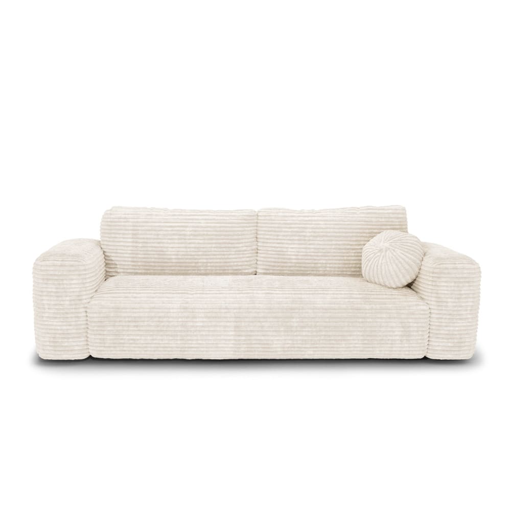 Divano letto ad angolo retto cassettone 5 posti velluto coste crema