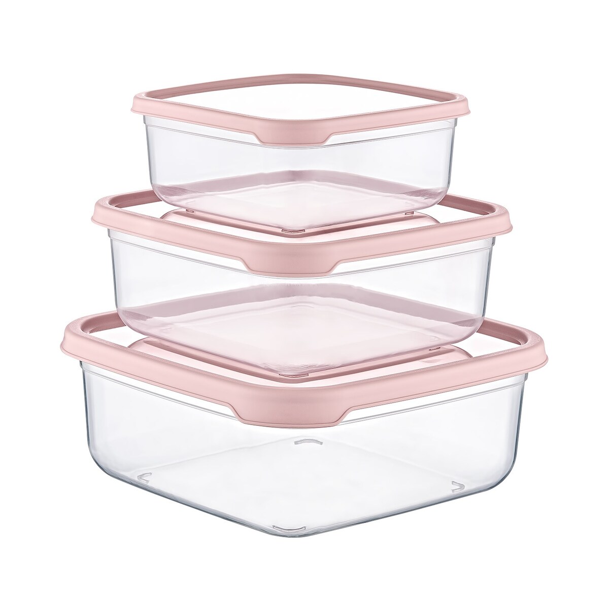 Set mit 3 luftdichten Lebensmittelbehältern, quadratisch, rosa 7house