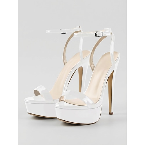 sandali da sposa eleganti con cinturino alla caviglia e tacco a spillo da donna, scarpe da sposa con tacco alto e punta aperta per la sposa, tacchi da cerimonia bianchi minimalisti