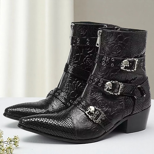 stivali da uomo con fibbia in pelle nera goffrata – design classico con dettagli borchiati, perfetti per eventi formali, abbigliamento casual e abiti da sera