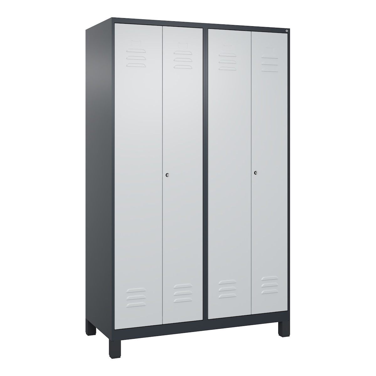 C+P Doppel-Spind Classic PLUS, Füßen, 4 Abteile, HxBxT 195x120x50cm, Zylinderschloss, Anthrazit/Hellgrau von PROREGAL