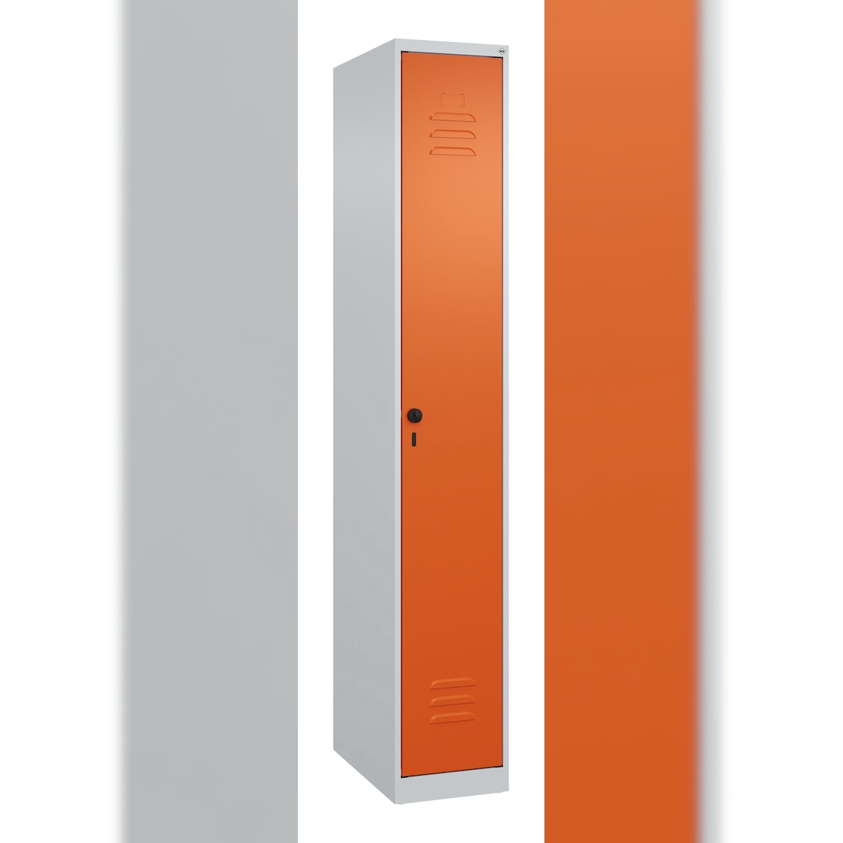 C+P Spind Classic PLUS, 1 Abteil, HxBxT 185x30x50cm, Sicherheitsdrehriegel, Hellgrau/Reinorange von PROREGAL