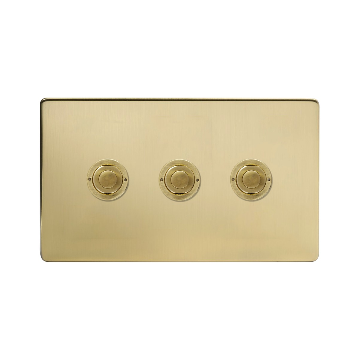 Soho Lighting Brushed Brass 3 Gang 6A 2 Way Push Button Switch