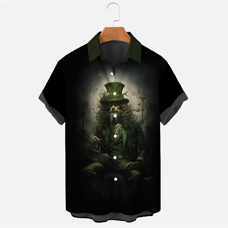 St.Patrick's Day Four Leaf Clover Gothic Men's Shirt Daily Wear Going out Weekend Summer Turndown Short Sleeves Black S, M, L 4-Way Stretch Fabric Shirt St.