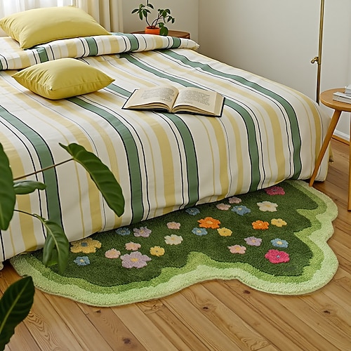 Tappeto di forma irregolare per camera da letto, comodino, tema prato, resistente allo sporco, tappetino per pavimento facile da pulire