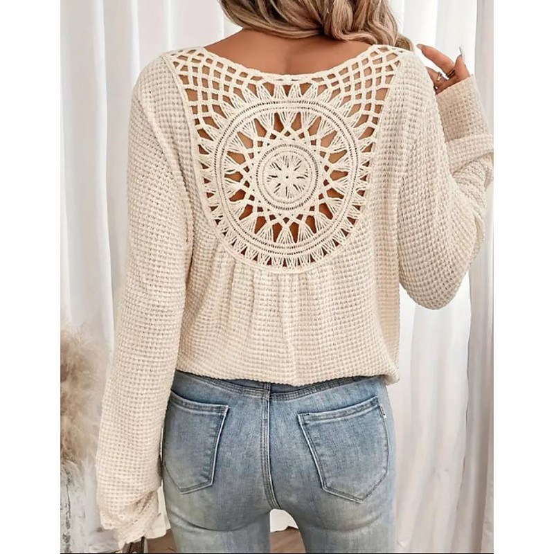 Women's Blouse Lace Tops Plain Active Stylish Long Sleeve V Neck Regular Tops Holiday Going out Lace White Summer Spring