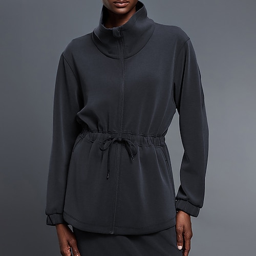 Per donna Giacca da yoga Giacca con cerniera completa Traspirante Coulisse Manica Lunga Gli sport Tinta unica Top Per Palestra Corsa Fitness Abbigliamento sportivo