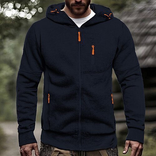Per uomo Felpa con cappuccio Felpa con cappuccio a zip intera Nero Bianco Vino Verde militare Blu marino Con Cappuccio Semplice Cerniera Tasca Sport Outdoor Quotidiano Ferie Poliestere Streetwear