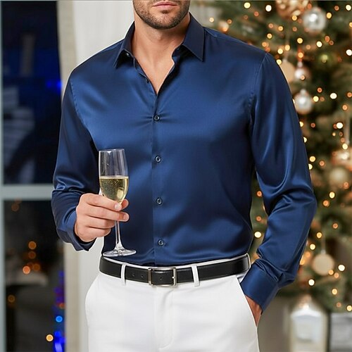 Per uomo Camicia Camicia in raso Camicia casual Camicia con Bottoni Semplice Matrimonio Vacanza Blu chiaro Nero Vino Blu reale Manica Lunga Bavero Primavera Autunno Abbigliamento