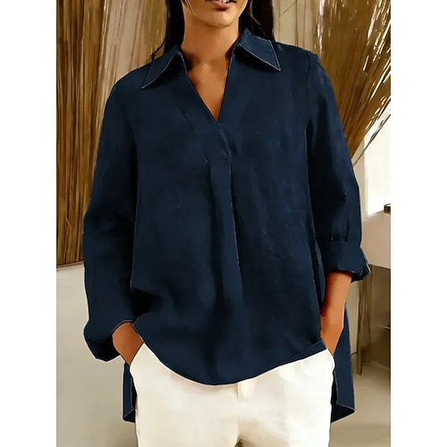 Per donna Camicia Tinta unica Semplice Vintage Elegante Manica Lunga Colletto a Camicia Quotidiano Ferie Blu Vino Blu marino Marrone Estate Primavera
