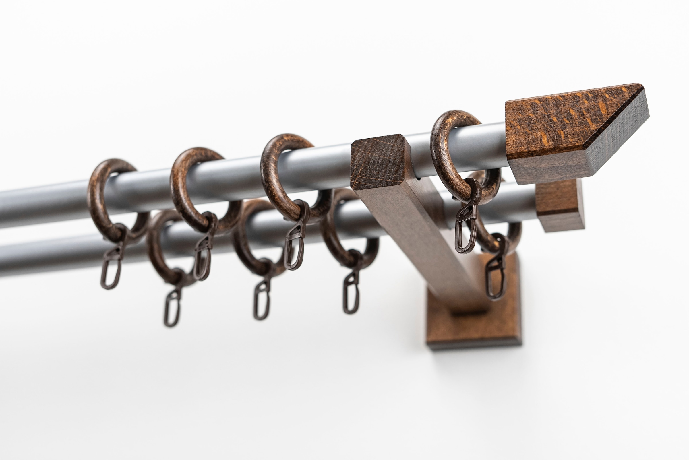 Gardinenstange GARESA "CUBUS", braun (nussbaum, chromfarben), L:240cm Ø:20mm, Holzwerkstoff, Metall, Gardinenstangen, Vorhanggarnitur, verlängerbar, Endknopf abgeschrägt, mit Ringe