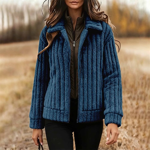 Per donna Giacca in Pile Giacca Sherpa Cappotto Teddy All'aperto San Valentino Quotidiano Autunno Inverno Cappotto Vestibilità regolare Antivento Caldo Contemporaneo Elegante Pelliccia Giacca Manica