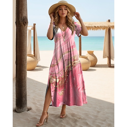Per donna Abito Midi Abito a trapezio Vacanza Casual Spiaggia Ferie Data Vestibilità comoda Grafico Astratto Manica Corta Girocollo Blu Giallo Viola Arancione Estate Primavera
