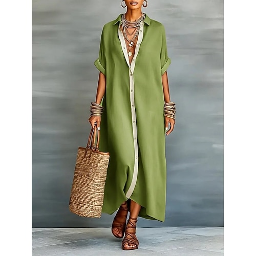 Per donna Abito maxi Abito Camicia Elegante Casual Feste Vestibilità comoda Semplice Manica Corta Colletto a Camicia Blu Nero Rosa Verde Estate Primavera