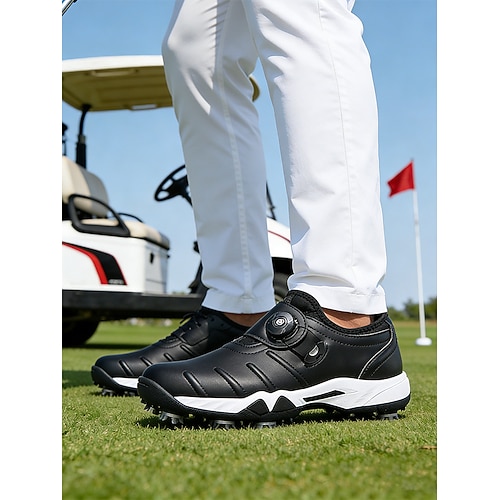 scarpe da golf da uomo, in similpelle bianca con chiusura regolabile con boa, vestibilità comoda, suola antiscivolo, perfette per il golf, gli sport all'aria aperta e uno stile di vita attivo