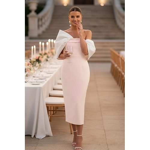 Tubino Colonna Lunghezza Tè Abito da Ballo Vestito da Festa Abito da Cocktail Abiti da Ballo Elegante Senza Maniche Senza Spalle Balli di fine anno Festa in giardino Crepe Elasticizzato con