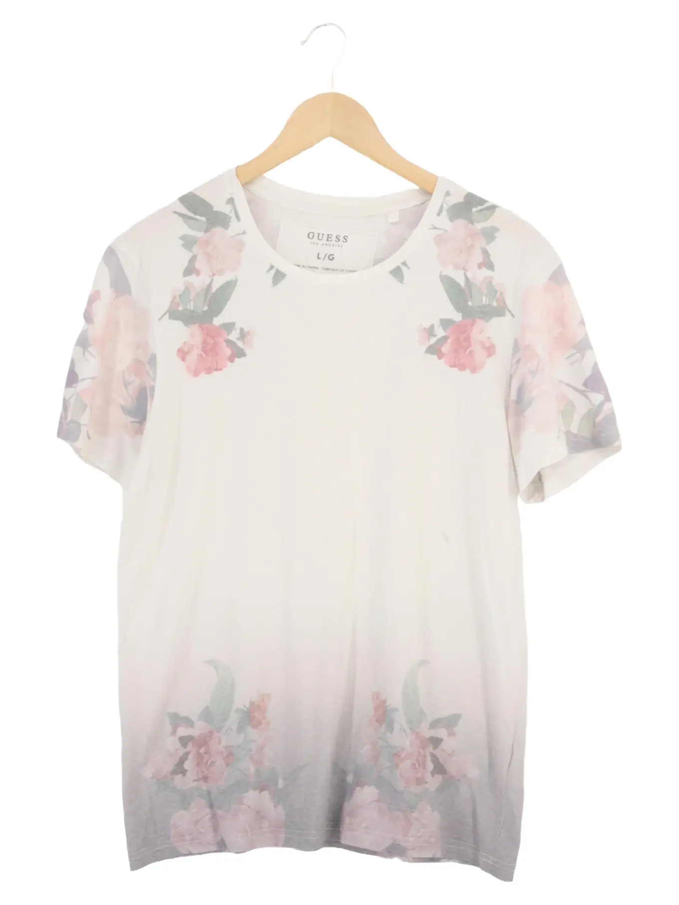 GUESS T-Shirt Damen L Weiß Blumenmuster Casual Chic
