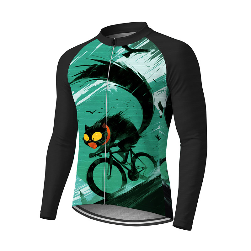 Men's Cycling Jersey Downhill Jersey Cat Character Contrast Color Long Sleeve Bike Tee Tshirt Jersey Compression Clothing with 3 Rear Pockets Mountain Bike MTB Road Bike Cycling UV Sun Protection